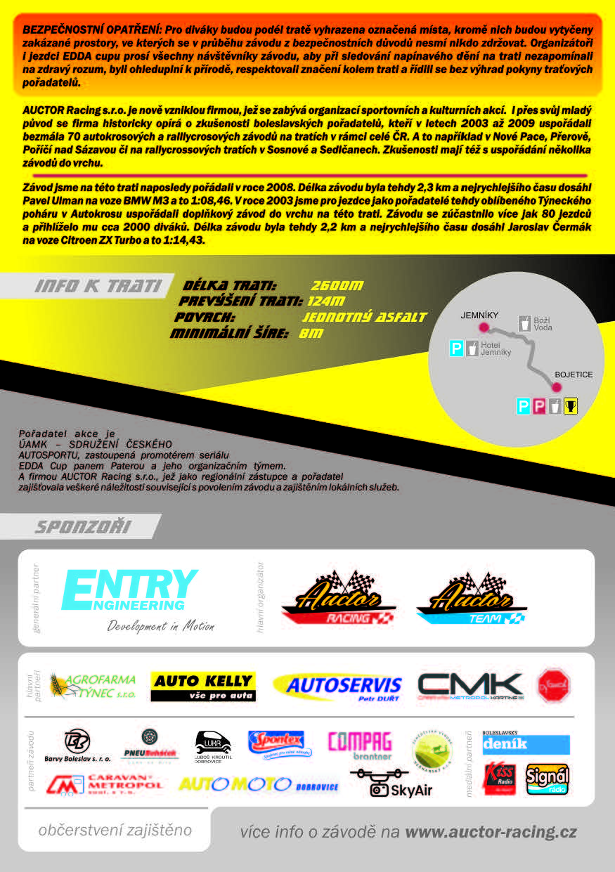 2018 – AUCTOR Racing s.r.o. uspořádal ve spolupráci s ÚAMK – SDRUŽENÍ ČESKÉHO AUTOSPORTU 2. Podnik seriálu závodů automobilů do vrchu EDDA CUP na trati mezi Jemníky a Bojeticemi u Mladé Boleslavi. Závod se konal 27. - 29. dubna. Závod se jel dle propozic seriálu Edda Cup a zároveň byl domluven volný závod i pro zájemce z jiných motoristických disciplín.