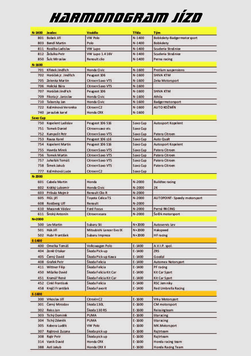 Program k závodu - 1 strana , 2 strana, 3 strana, 4 strana