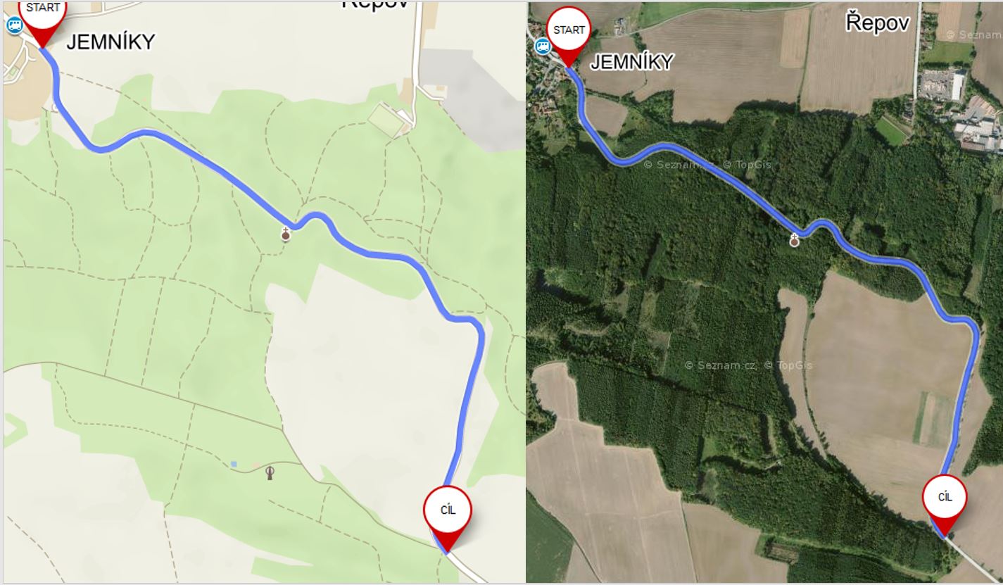 PARKOVIŠTĚ DIVÁKŮ - pro diváky budou připravena dvě odstavná parkoviště. První ve směru od Mladé Boleslavi bude situováno na spojovací komunikaci mezi Jemníky a Řepovem a druhé ve směru od obce Bojetice na panelové cestě směřující k lesu nazývajícímu se U Doubku.