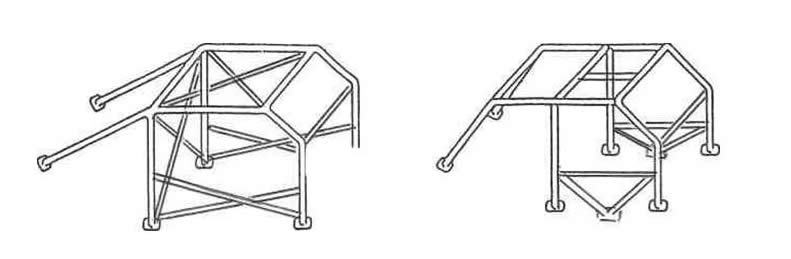 podle konstrukce je dělíme na rám s oblouky příčnými (napříč vozidla) oblouk jeden je nad předním sedadlem a druhý podél předních sloupků. Zadní oblouk musí být